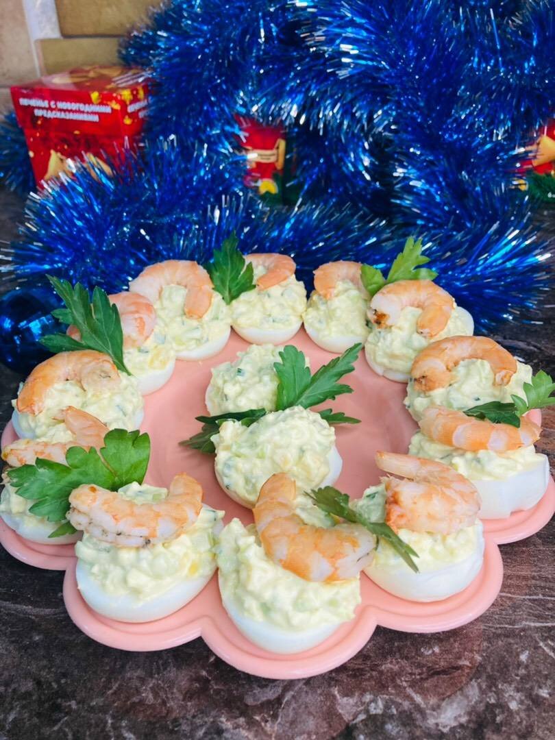 Ингредиенты: Яйца, Сыр, Огурец, Майонез Способ приготовления: Яйца сварить, почистить и разрезать на пополам/ Желтки растереть, сыр и огурец порезать мелким кубиком, всё соединить, добавить майонез и перемешать. Наполнить половинки яиц и украсить на свой вкус. Приятного аппетита 😋😋😋