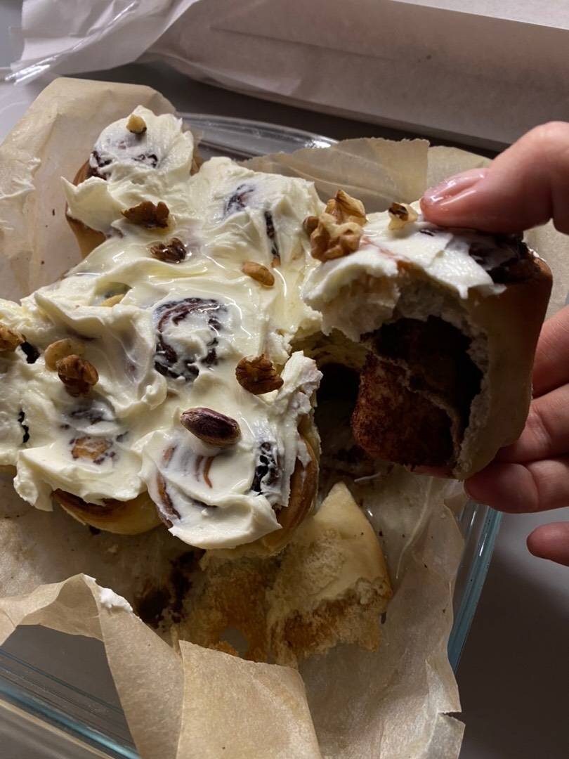 Безумно вкусно и быстро. Ингредиенты: муки, воды, сахара, дрожжей, слив масла, соли, яйцо, Крем, маскарпоне, сахарная пудра на глаз, Начинка, слив масла, сахара, какао, корицы, Пропитка, Вода, Сахарный сироп или любой другой сироп (брала амаретто), Коньяк или алкоголь для пропитки Способ приготовления: Сахар и дрожжи смешать с тёплым молоком, дать настояться. Растопить масло и вмешать в молочную смесь. Насыпать муку и влить вышеуказанные ингредиенты. Перемешать и оставить подходить тесто в тёплом месте на час. Перемешать все для начинки. Возможно растопить масло и смазать будущий пласт. Подошедшее тесто раскатать тонко, смазать маслом и посыпать начинкой. Распределить на всей поверхности. Скатать рулетом и разрезать на равные части. Уложить на пергамент и поставить в духовку на 15-20 минут, 180 градусов. По завершении времени вынуть и смазать смесью из воды, сиропа и алкоголя. Когда остынет нанести крем, перемешать маскарпоне с сахарной пудрой.