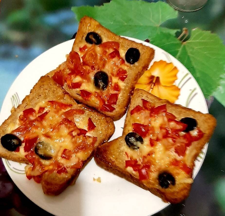 #завтрак Такие тосты обязательно насытят и удовлетворят ваши потребности утреннего завтрака. По сути начинка на тост может быть абсолютно любой. Остался салатик, экспериментируйте, выложите на тост, посыпьте сыром. Это очень вкусно. Ингредиенты: Перец сладкий, Помидор, Оливки , Сыр, Майонез , Тосты Способ приготовления: Тосты подсушиваем, смазываем майонезом. Нарезаем кубиками перец и томаты, оливки пополам. Выкладываем на тосты и посыпаем сыром. Ставим на 5 мин при температуре 230 °. Приятного аппетита!!!