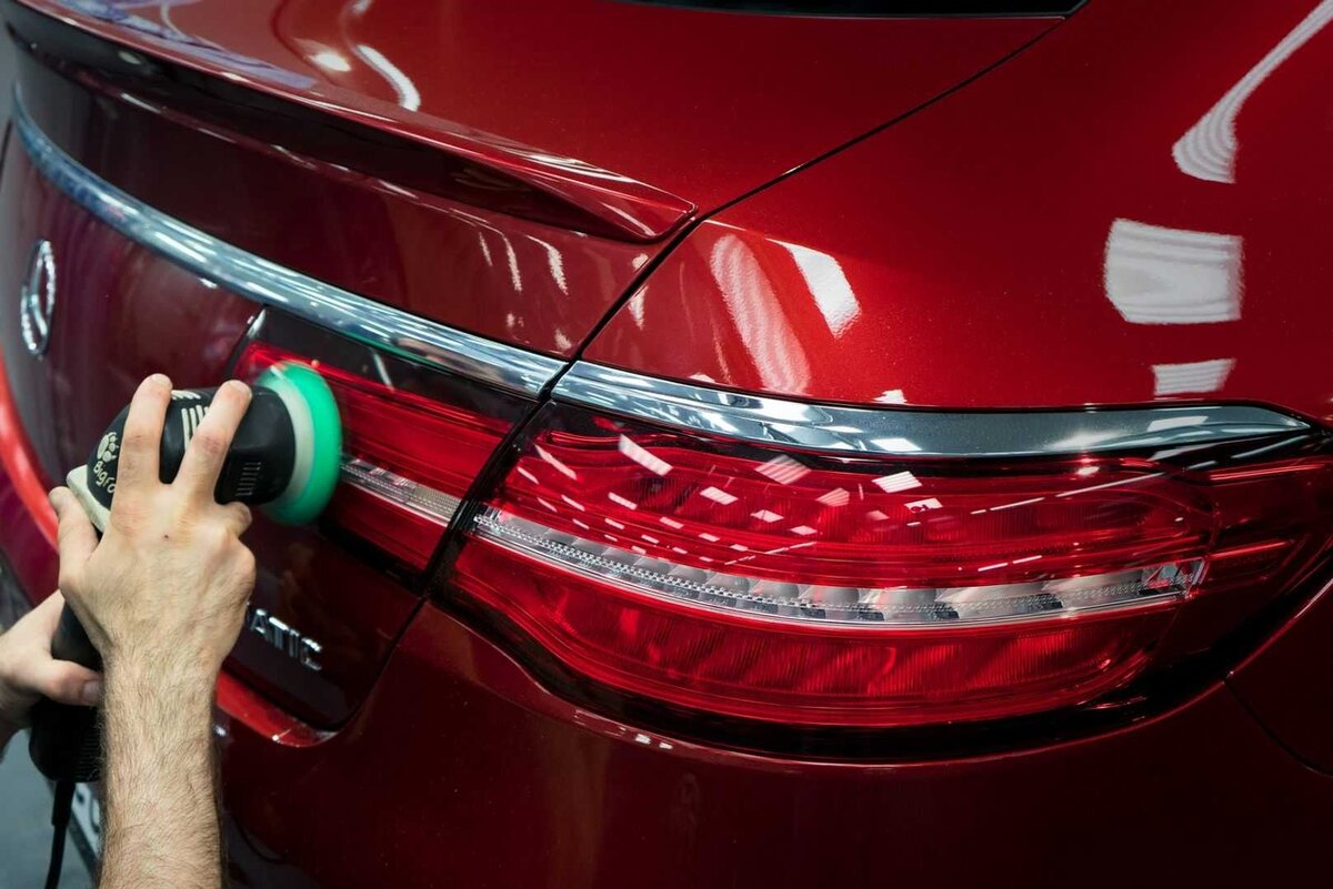 Полирование позволяет: 1. Вернуть обветрившимся отделочным покрытиям первоначальный глянец. 2. Удалить частицы пыли, риски, небольшие царапины или текстуры (шагрень). 3. Придать высокий уровень глянца матовым областям, появившимся в результате участочного ремонта (перепылы, зоны перехода) с незаметным переходом в первоначальное покрытие. Этапы полирования 1. Очистка поверхности Тщательно промойте поверхность, которое будет подвергнуто полированию, чистой водой, затем антисиликоном и высушите. 2. Шлифование Применяется для удаления частиц пыли, перепыла, шагрени, рисок, следов окисления, подтеков, капель. 3. Полирование Процесс полирования 1. Нанесите достаточное для работы количество состава на участок размером 60x60 см. 2. Распределите равномерно пасту полировальником до начала механической обработки (частота вращения машины 1500–2500 об/мин). На новый или сухой полировальник следует предварительно нанести некоторое количество пасты, чтобы обеспечить первоначальное смачивание.