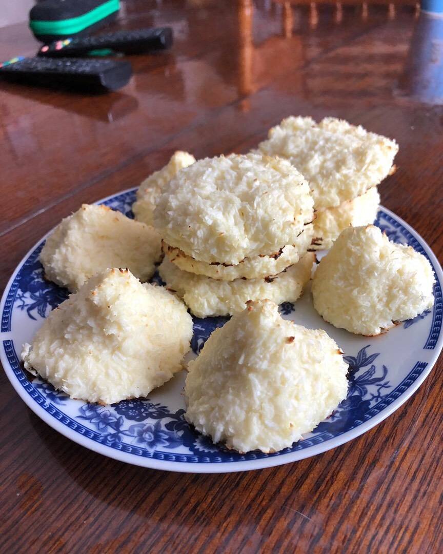 Ингредиенты: кокосовой стружки, сухое обезжиренное молоко, сахзам, яйцо, мягкого творога, горячей воды Способ приготовления: Смешать сухие ингредиенты, добавить воду, перемешать. Дальше добавляем остальные ингредиенты, формируем печеньки и в духовку на 10 мин 180 С. Наслаждаемся и приятного чаепития