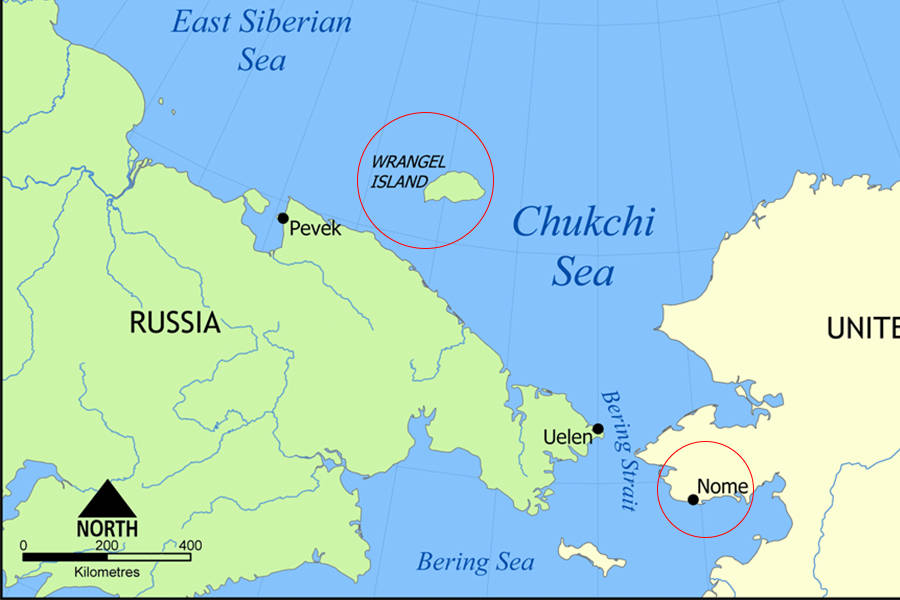 Остров Врангеля, расположенный в 140 км к северу от Чукотки, номинально вошел в состав Российской Империи в 1911 году, когда на его негостеприимном, необитаемом берегу участниками полярной экспедиции с ледокола "Вайгач" был поднят российский триколор. Зимой 1914 года на острове бедовали участники канадской арктической экспедиции, организованной Вильялмуром Стефанссоном, антропологом исландско-канадского происхождения.