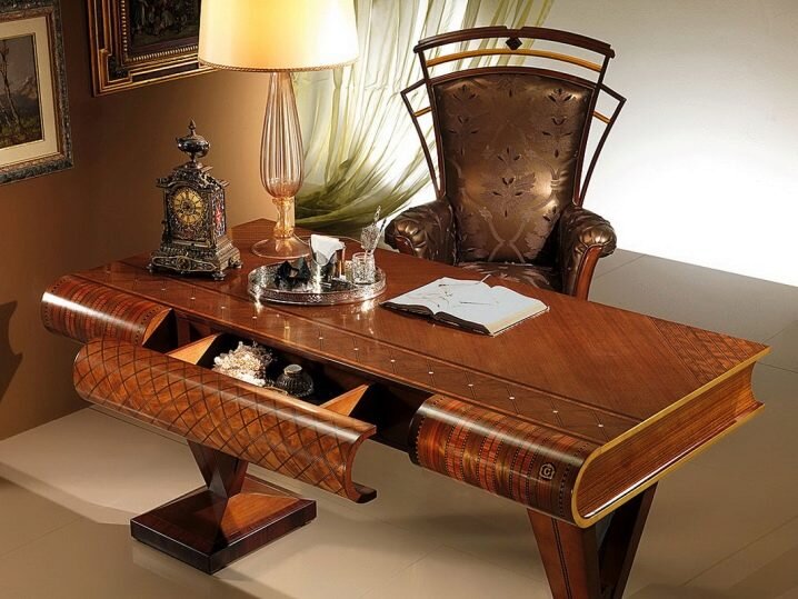 С развитием интерьерного дизайна и появлением новых современных материалов письменный стол стал выглядеть по-новому. Теперь он может представлять собой не только рабочий вариант, но и быть значимой частью интерьера в любой комнате. Так, например, модели из массива натурального дерева будут органично вписываться даже в гостиную с самым изысканным интерьером. И это не обязательно может быть классический вариант стола – его вполне может заменить более изящное и малогабаритное бюро. Считается, что эргономически самая удобная модель письменного стола – угловая. При минимальных затратах окружающего пространства получается вполне большая площадь рабочей поверхности. Установить такую конструкцию можно в любом углу комнаты, особенно если модель выполнена с подсветкой, но, как правило, место у окна для нее предпочтительнее. При таком варианте расположения столешницу можно дополнить надстроенными вверх полками, боксами, шкафчиками, которые могут идти в комплекте или приобретаются отдельно. Выбра