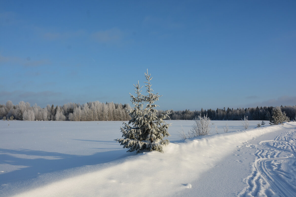Отмахав 30 с небольшим км., от нашей горнолыжной базы на Ципиной Горе, мы сворачиваем на грейдер, ведущий к деревне. И сразу же видим, как между двух отвалов дороги, пересекая ее, стремглав несется веселый заяц. Всё прозошло так стремительно, что не все участники поездки (особенно маленькие ;)) успели рассмотреть лесного жителя в подробностях. Заяц же, не стал дожидаться нашего автомобиля, сиганул через сугроб и был таков, оставив нам на память только свои следы, хорошо заметные на свежевыпавшем снегу. Мы посчитали это хорошим и добрым знаком и, как и зайчик, устремились к деревне.