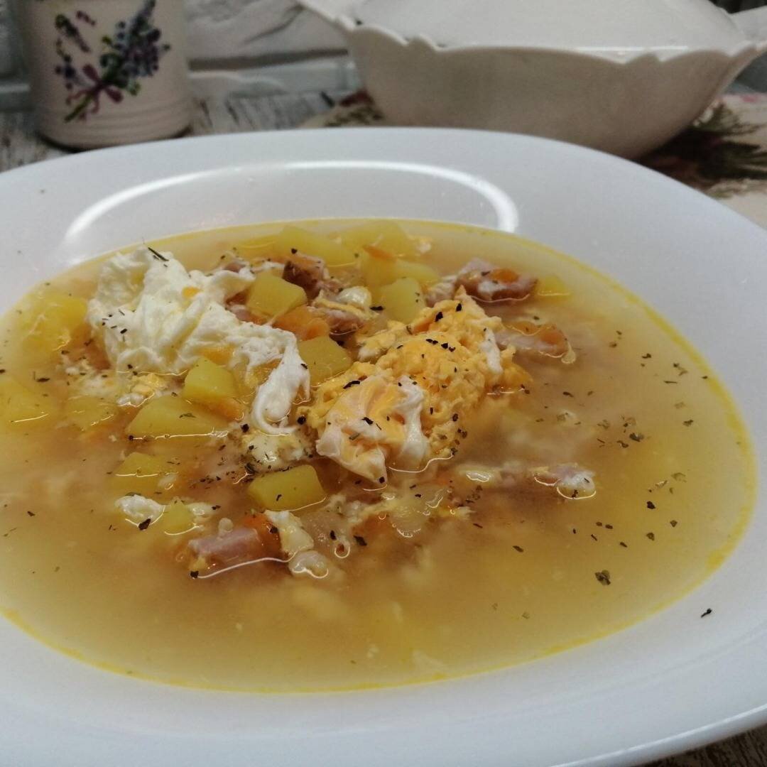 Вкусный супчик на скорую руку. Ингредиенты: На 2 л бульона или воды:, картофелины, луковица, небольшую морковь, яйца, полутвердого сыра или плавленый сырок, колбасы, буженины или любого мяса, Соль, перец, специи по предпочтению, Лавровый лист, Сметана и зелень для подачи Способ приготовления: Картофель кубиком или брусочками, морковь мелким кубиком, лук мелко нарезаем. Отправляем варить вместе с лаврушкой и специями. Варим до готовности картофеля, добавить нарезанную мясную продукцию, сыр (порезать мелким кубиком или натереть на крупной тёрке), посолить по вкусу. Вынуть из супа лаврушку, она уже отдала свой аромат. Яйца разбить в миску и немного разболтать вилкой. Влить в уже готовый суп, выключить огонь, накрыть крышкой и даём настояться 5-10 минут. Можно подавать. При подаче не забудьте про сметану и зелень. Приятного аппетита! Инстаграм @svetlana___konovalova