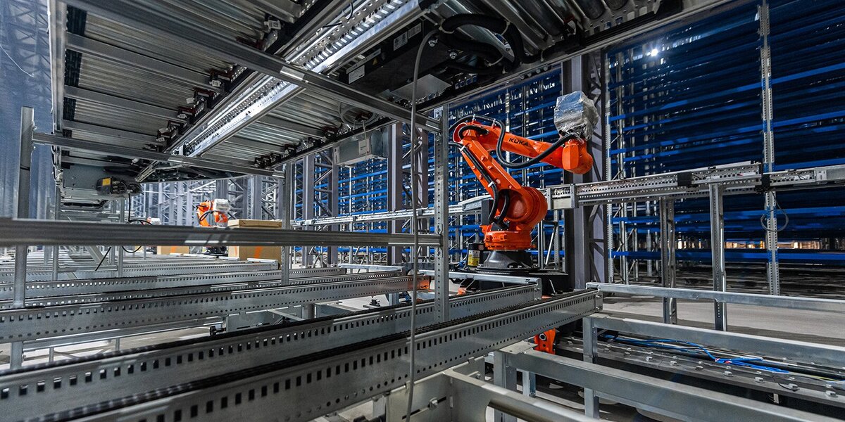 Роботы KUKA перемещают короба с документами в роботизированном архиве