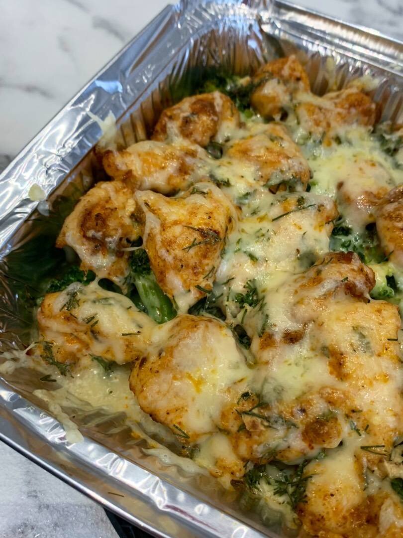 Отличный вариант полезного и вкусного блюда🥰 Ингредиенты: Брокколи, Филе куриное, Сыр , Соль, перец, паприка , Яйцо, Сметана, Чеснок, зелень Способ приготовления: Брокколи у меня были замороженные, но уже растаявшие. Выложить брокколи в форму первым слоем. Курицу порезать на мелкие кусочки. Я предварительно замариновала в приправах для курицы, паприке + соль, перец. Выложить поверх филе. В миске смешать яйцо, если не крупные, то 2 яйца, сметану, соль, перец, я ещё добавила чеснок и укроп, перемешать. Получившейся смесью залить филе и отправить в предварительно разогретую до 180 градусов духовку на 20-25 минут. Пока можно натереть сыр. По прошествии времени, как грудка запеклась, достать и посыпать все сыром. Отправить в духовку ещё на 5-10 минут. Приятного аппетита!