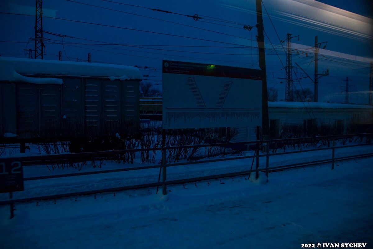 Сегодняшний обзор про фотографии, сделанные из окна поезда. В этот раз, в отличие от Воронежа и Ростова-на-Дону поездка будет зимней. И год уже значительно более близкий к настоящему времени - 2019. За все прошедшее время я не раз убеждался - снимать через стекло из вагона - затея так себе, получится далеко не всякая фотография, да и то качество будет совсем не фонтан. Однако, каждый раз попытки фотографировать делаю и каждый раз говорю - это последнее фото через стекло. Ровно до следующей поездки. Но отвлеклись, давайте ближе к теме. 1. В Нижний я тогда отправился на скоростном поезде "Стриж", который первой остановкой имел станцию Владимир. Короткую, в пару минут, потому как хоть по станции Владимир меняется постоянный "московский" ток на переменный далее, смена локомотива "Стрижу" не нужна - он идет с двухсистемным электровозом ЭП20. Правда во время остановки было еще темновато за стеклом - получилось вот как-то так: 2. Попытка сфотографировать снегоуборочный поезд, в тот момент, ко
