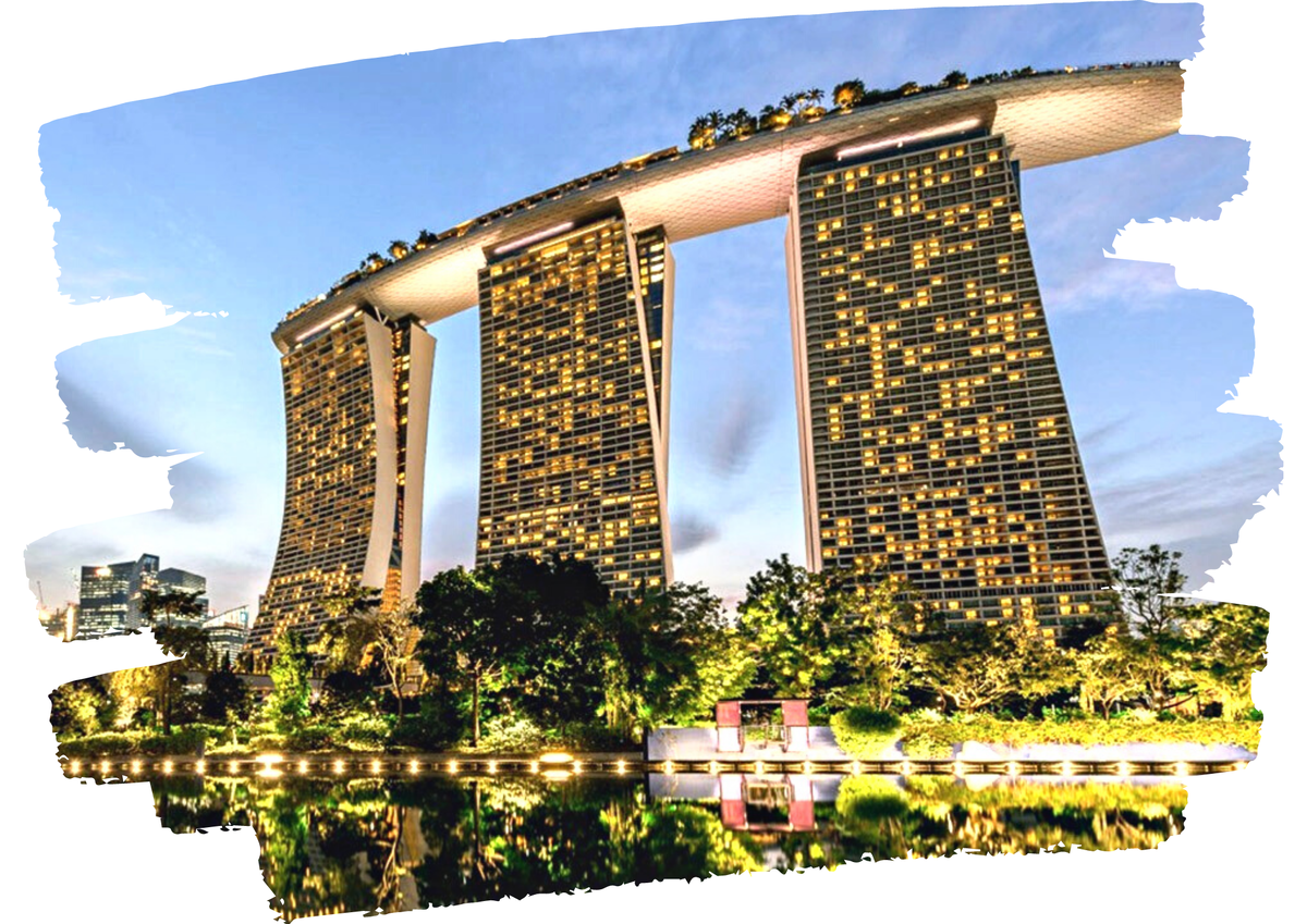 Этот шикарный комплекс возвышается над заливом. А из окон открывается потрясающий обзор с панорамным видом на горизонт Сингапура, возможно это лучший вид на город.