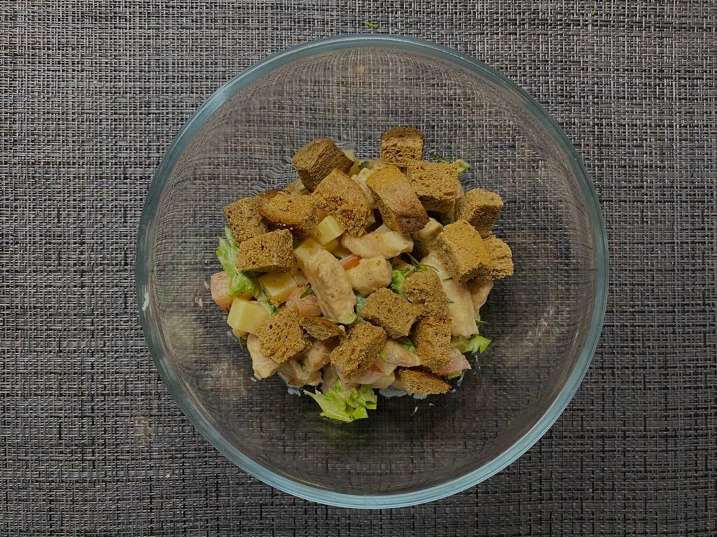 Этот салат покорил наши сердца. Он готовиться очень просто и быстро, а еще он невероятно вкусный - насыщенный, свежий и сытный. Это рецепт идеально подойдет как для праздничного стола, так и в качестве блюда на каждый день, мы даже ели его на ужин. Ловите рецептик и скорее готовить... Понадобиться: Для соуса: Готовим: 1. Для начала сделаем заготовку для сухариков. Можно, конечно, купить уже готовые, но домашние то всегда вкуснее. Хлеб (мы очень любим "Витебский") нарезаем небольшими кубиками и помещаем в миску. Добавляем соль и ваши любимые специи ( у нас копченая паприка и сухой чеснок), хорошенько перемешиваем хлеб и отправляем сушиться. Чтобы сэкономить время можно воспользоваться духовкой, но мне больше нравиться сушить сухари на батарее, выложив их ровным слоем на доску. Так сухари получаются хрустящими, воздушными и не жирными, ведь масло при такой сушке не используется. Если вы решите сушить сухарики, как и мы, то лучше это делать с вечера - на следующий день они уже будут полно