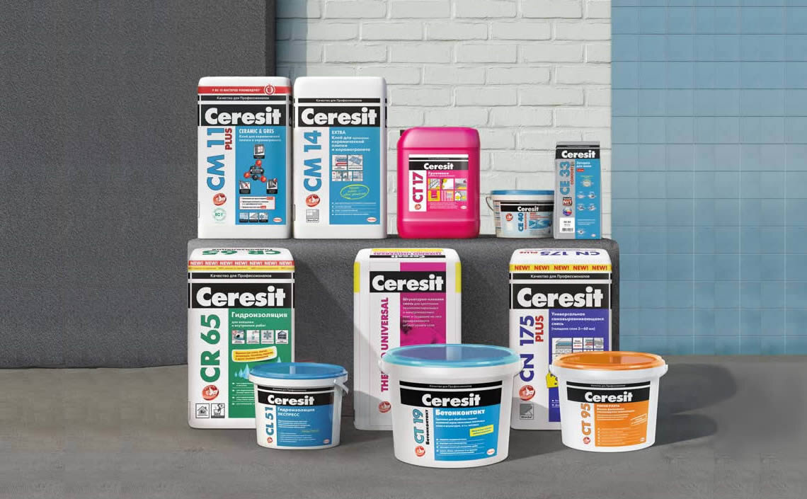 Сухие строительные смеси и готовые составы от торговой марки Ceresit являются отличным выбором, который обеспечит безупречное качество строительства, внутренней и наружной отделки. Торговая марка Церезит принадлежит корпорации Henkel, которая на собственных предприятиях, в том числе расположенных и в нашей стране, выпускает качественную продукцию, отвечающую всем требованиям стандартов, проходящую различные виды контроля и сертификацию. Строительные смеси Ceresit изготавливаются на высокотехнологичном оборудовании, по специальной формуле, с применением различных видов наполнителей и вяжущих элементов, а также различных модификаторов, для ускорения затвердевания, повышения прочности, влагостойкости, морозостойкости и других свойств. К основным видам наполнителей относится кварцевый или минеральный песок, известняк, гранитная или мраморная крошка, доломит. Вяжущими компонентами выступают: цемент различных марок, известь, гипс, порошки из полимеров. Производителем выпускается довольно шир