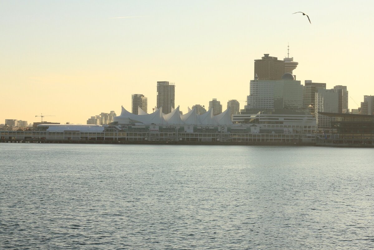 Погуляв здесь немного, я направился севернее в сторону висячего моста Капилано и окружающего его парка. Вот здесь мне наконец-то захотелось провести побольше времени, место отличное! Парк включает в себя несколько «аттракционов» для туристов, первый из которых - это непосредственно сам подвесной пешеходный мост, который нависает над каньоном глубиной в 137 метров. По дну каньона течет бурная речка Капилано. Когда по мосту одновременно идет несколько человек, мост начинает раскачиваться, что в условиях полумрака мешает делать четкие кадры. Далее между верхушками двухсотметровых пихт протянута сеть деревянных мостов, что дает тебе возможность подобно белке перебираться от дерева к дереву. Не для слабонервных есть «аттракцион» под названием «Cliffwalk», который представляет из себя систему подвесных металлических мостов и дорожек, местами со стеклянными вставками, проходящих вдоль скал высоко над каньоном. Так как скоро было Рождество, весь парк был украшен гирляндами. С началом темноты