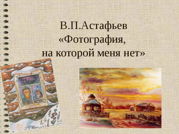 Сегодня познакомимся с замечательным автобиографическим рассказом Виктора Астафьева «Фотография, на которой меня нет». Коротко перескажем сюжет, но так чтобы после этой статьи у вас не утратился интерес к прочтению рассказа. Главным героем является мальчик Витя, сирота. Он живет с бабушкой и дедушкой в глухой деревне в Сибири. События, описанные в книге, происходят в предвоенное время. Автор рассказывает о необыкновенном для тех мест событии, взволновавшем всех жителей - ожидается приезд фотографа, который собирается фотографировать школьников. Все ребята с нетерпением ждали приезда фотографа и думали, кто где будет сидеть на фотографии. Расстроившись, что будут стоять в заднем ряду на фотографии, поскольку они плохо учатся, мальчики (главные герои рассказа) убежали на улицу и до ночи катались на санках с крутой горки и валялись в снегу. В результате, в ночь перед праздничным событием Витя сильно заболел и не смог прийти фотографироваться, что, безусловно было очень обидно. В этой с
