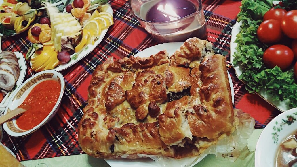 По обилию рыбных блюд в казачьей кухне можно было изучать подводный мир рек, вдоль которых раскинулись станицы и хутора, - Дона, Кубани, Терека. Лещ, судак, сом, форель, да мало ли какая большая рыбка попадётся на крючок казака. В мои сети попалась сёмга - и сегодня мы испечём пирог. Я приветствую вас, дорогие друзья, на канале «Когда казак сыт». От слов - к делу: необязательно нам нужна наживка, достаточно заехать в супермаркет и закупить все необходимые ингредиенты: слоёное дрожжевое тесто, красную рыбу (я всегда выбираю сёмгу), укроп, лимон, сливочное масло, яйцо. Пока доедем до дома, замороженное тесто уже растает, значит, осталось включить духовку и нагреть её до 220 градусов. Смазать растительным маслом рабочую поверхность стола и форму для запекания. Застелить форму бумагой для запекания. Тесто разделить на две неравные части, большую раскатать по размеру формы, прибавив немного для бортиков, переложить тесто в форму. Рыбу освободить от костей, разрезать на пласты, посолить, поп