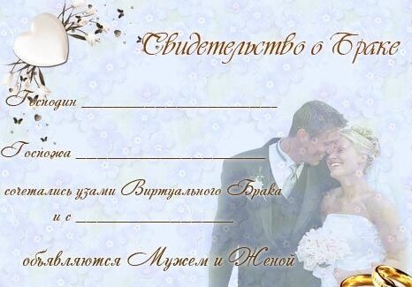 Виртуальное свидетельство о браке- прекрасный шуточный подарок с расходами до 100 рублей.