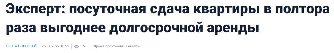 Эксперты сервиса Суточно.ру провели сравнение доходности от сдачи квартир посуточно и на длительный срок. Результаты показали, что посуточная сдача квартиры приносит владельцу доход, в среднем, в полтора раза больше, чем долгосрочная аренда. По словам экспертов, средняя стоимость долгосрочной аренды однокомнатной квартиры в Москве составляет 40 тыс. рублей в месяц, а посуточной аренды - 3 тыс. рублей в сутки. Если принять во внимание, что при посуточной сдаче заполняемость составит около 70%, то владелец будет зарабатывать 60-80 тыс. рублей в месяц, что, как минимум, в полтора раза выше, чем доходы от долгосрочной аренды. В других регионах другие цены, но соотношение получается примерно таким же. Авторы исследования отметили, что речь идет не о любых квартирах, а именно о тех, которые наилучшим образом подготовлены для сдачи в аренду. Это, прежде всего, однокомнатные квартиры, квартиры-студии. Такая квартира не обязательно должна располагаться в центре, подойдет расположение и вблизи к