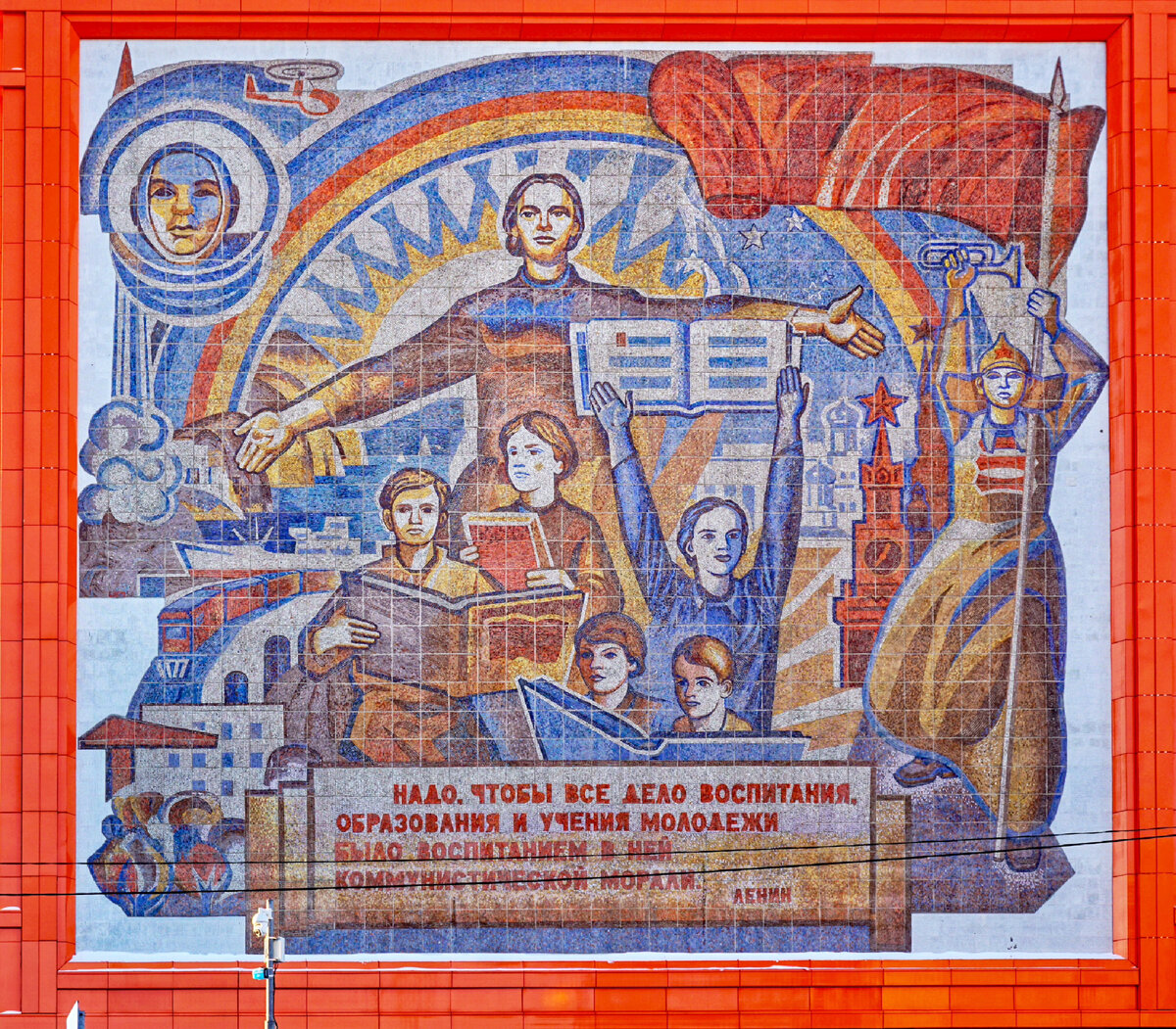 Все эти улыбающиеся пионеры, летящие к иным планетам космонавты, вечно молодой дедушка Ленин, вытянувшиеся в античных позах герои Гражданской войны начали появляться во времена Хрущёва. Нет, конечно мозаика и раньше использовалась в советском строительстве, но подлинный её расцвет был спровоцирован борьбой с «архитектурными излишествами». В условиях, когда иные средства архитектурного самовыражения оказались под запретом, мозаичные или сграффитовые панно были порой единственным способом добавить индивидуальности безликим творениям типового строительства. Вот их и делали по всему СССР. В детстве я знал художника, который занимался изготовлением таких мозаик по заказу различных предприятий советской Украины. Он говорил, что за них очень неплохо платили. Были люди, которым не нравились такие траты, мол - зачем пускать деньги на ветер. А как по мне, советская мозаика - пожалуй лучшее проявление социалистической системы на улицах наших городов. Большинство людей ещё не осознают её ценность, но настанет время, когда советская мозаика будет восприниматься сродни картинам старых мастеров живописи. Чем дальше течение времени уносит нас от Советского Союза, тем более экзотично выглядит советское искусство.