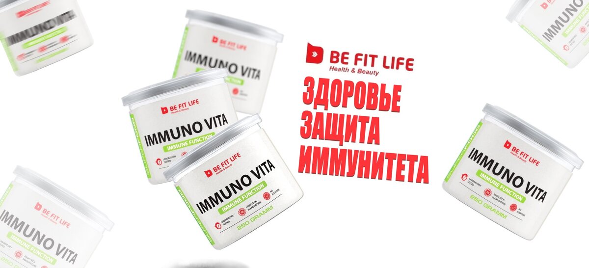 BE FIT LIFE предлагает качественную и доступную продукцию для людей, заботящихся о своем здоровье. Специально разработанные рецептура и составы продуктов, произведенных из высококачественного сырья с высокой биодоступностью, отвечают на запросы самых искушенных покупателей. BE FIT LIFE представляет вашему вниманию линейку продуктов для поддержания здоровья, молодости и долголетия – это аминокислоты, ноотропы и релаксанты, жиросжигатели, тестостероновые бустеры, добавки для связок и суставов, витамины и минералы. Некоторые из них являются инновационными на рынке. К примеру, инновационный продукт Immuno Vita BE FIT LIFE — комплекс витаминов для поддержания иммунитета и нормализации нервной системы. В состав входит мощнейший комплекс витаминов В, который способствует общему эмоциональному фону и снятию напряжения. Благодаря Immuno Vita от BE FIT LIFE пища усваивается лучше и приносит больше пользы организму. Эффекты от приема Immuno Vita BE FIT LIFE не заставляют долго ждать. Это: — замет