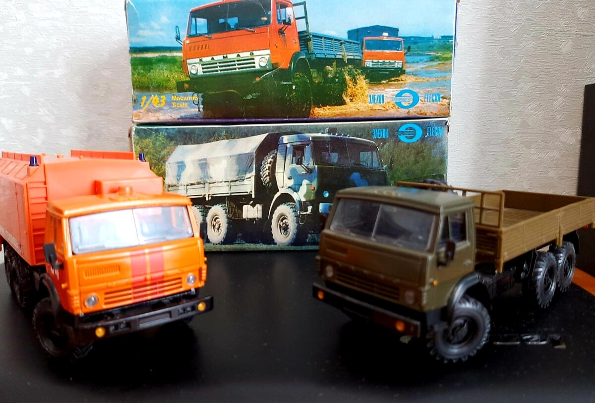 Две интересные авто модели пополнили мою коллекцию. Давно мечтал заполучить камазы Арек / Элекон с поворотным мостом. Удача улыбнулась, и теперь у меня сразу два редких экземпляра - КАМАЗ-43105 и КАМАЗ-4310 "Аварийная Техпомощь 04" НАЧНУ ПО ПОРЯДКУ Модели в отличном состоянии, с оригинальными ранними коробками. Выпущены модели грузовиков компанией Арек (сейчас Элекон ) в 1990-х годах, были куплены прежним владельцем в магазине новыми и находились в одних руках более двадцати лет. На коробке, в отличии от ныне выпускающихся, еще присутствует фирменный логотип компании "КАМАЗ" Сами коробки красочные, с изображением большегрузов, двигающихся по бездорожью. Впервые встречаю такие фото на упаковках. Коробки не одинаковые, для каждой модели КАМАЗа - своя. Полноприводные коллекционные модели КАМАЗов 6х6 Но самое интересное у масштабных моделей - передний поворотный мост заводского исполнения. В основном, компания Элекон / Арек выпускала и выпускает модели внедорожных КАМАЗов с не поворач