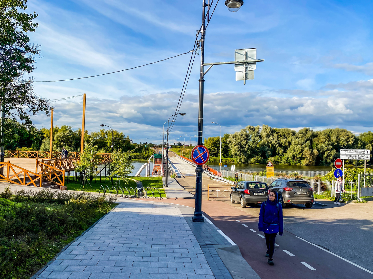 Гуляли мы с другом по городу Коломне, смотрели на его достопримечательности и на красивую архитектуру. И сами того не заметили, как дошли до Москвы реки. Через реку был перекинут мост. Мы решили спуститься и пройтись по нему, заодно сделать несколько фотографий речки. На берегу реки совсем недавно соорудили деревянную обзорную площадку. Года три назад, когда я был в Коломне, ее здесь ещё не было. Мы решили взойти на нее и увидеть вид на реку, который оттуда открывался. Виды там и правда были красивыми. А вот и тот самый мост, к которому мы подошли. Пока мы фотографировали эти пейзажи, вдруг заметили, что мост начал двигаться. Спустя некоторое время он и вообще сложился пополам. Выходит, что мост этот не обычный, а разводной. И сейчас по реке должно пройти какое-то судно. Возле моста собралось довольно много людей. Кому-то нужно было на ту сторону реки. А кто-то, как и мы, просто пришёл поглазеть на разводной мост. Также на мосту были и рыбаки. Но рыба ловиться как-то не очень, похоже,