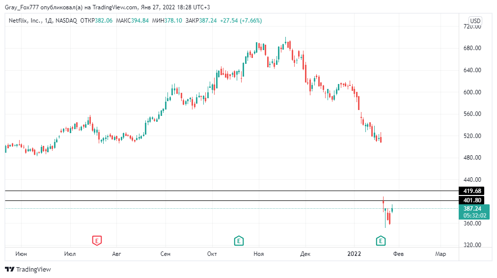 Приветствую. Собственно, после заседания котировки пошли вверх, но теперь все четко известно, что аттракцион невиданной щедрости от ФРС подходит к концу. Печатный станок выключают и вскоре будут поднимать ставки. Как это отразится на рынках. Узнаем уже в этом году. Пока же к акциям. Акции Netflix: Кажется, акции Нетфликс начинают приходить в себя. А теперь пора задуматься о вложениях, если вы этого еще не сделали. О том, что такую скидку пропускать не стоит я говорил ранее еще в инвестиционной возможности. Падение на более 20% за день на отчете – это очень сильная паника и возможность добрать акций. На длинной дистанции компания явно сможет справиться со своими проблемами. Примерно похожая ситуация была с Амазон, но главные схожести компаний в том, что они занимают огромную долю в определенной нише. Поэтому, любые их неудачи носят только временный характер. Акции Amazon: Кстати, про Амазон. Его сейчас тоже хорошо взять в покупки. По техническому анализу хорошего сигнала на то, что ак
