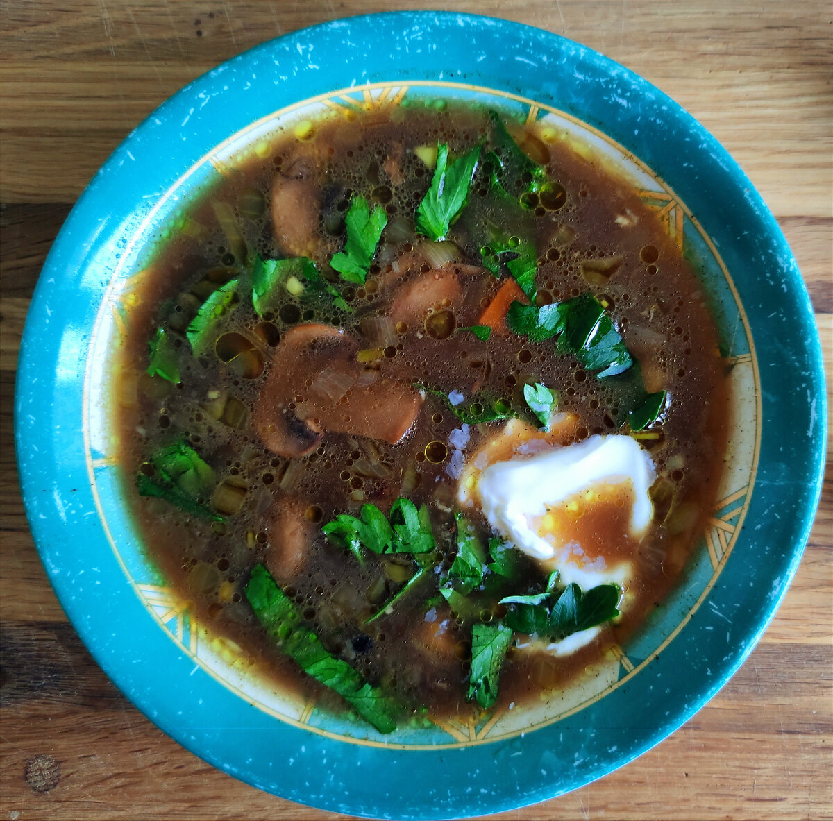 Как известно, шампиньоны- это грибы без ярко выраженного вкуса и аромата. Поэтому, чтобы суп получился вкусным, с насыщенным грибным вкусом и ароматом, можно применить хитрость- добавив к шампиньонам небольшое количество сухих белых грибов. Такой хитростью часто пользуются в ресторанах, когда подают грибной крем-суп- в его пюреобразной консистенции ни за что не догадаешься, что основной ингредиент тут- шампиньоны. Настолько яркий вкус и аромат у белых сушёных грибов, что достаточно добавить небольшое количество и уже кажется, что ешь крем-суп из белых грибов. Вот так хитро) И так, на 4 порции супа нам понадобится: 🍲 Приготовление: В бульоне отвариваем нарезанную кубиками картошечу и нарезанную мелкими кубиками морковь. Отдельно на сковороде на смеси сливочного и подсолнечного масла обжариваем лучок пару минут, затем добавляем нарезанные шампиньоны, обжариваем их и,помешивая, ждём когда выпарится влага из грибов. Добавляем измельчённые сухие белые грибы и оставляем на минутку, помеши