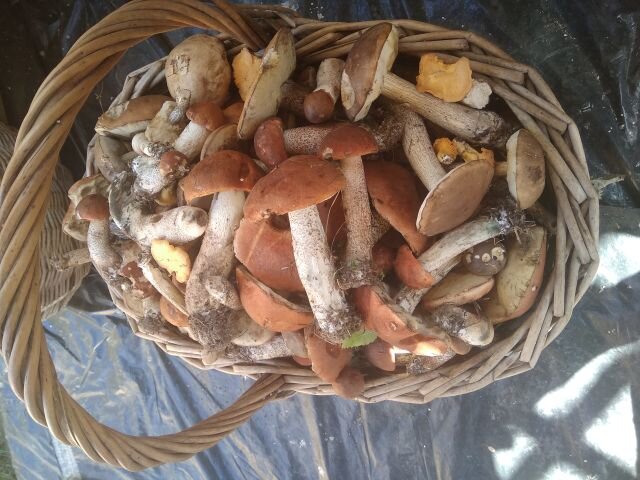 Корзина белых это хорошо и замечательно.Но если белых каждый день по корзине,как это обычно и бывает у грибников из Подмосковного ОГО,то хочется определенного разнообразия.И тогда корзина с подосиновиками, будет как раз в тему. Подосиновик гриб простой.Растет исключительно под осинами.Приходишь такой к осине,наклоняешься,да срываешь подосиновик. А если осин нет?Тогда подходишь к березе,наклоняешься и срываешь другой подосиновик.Да еще и получше,чем под осиной.С симпатичной оранжевой шляпкой. Ну, а если ни осин ,не берез нет,то есть еще один вариант...тогда идешь к сосне. Видишь под ней подосиновик и наклоняясь срываешь его.Шляпка темненькая,коренастенький как сосновая шишка. Было-бы желание собрать корзину подосиновиков,а под какими деревьями грибы собирать -дело десятое. Хороши подосиновики,идут и в маринад и на жареху. Называют их еще красноголовиками.За шапочки пусть и разных оттенков но все в красном колере... Подосиновики хороши еще и тем,что червяки их не особо любят. Вот нечерви