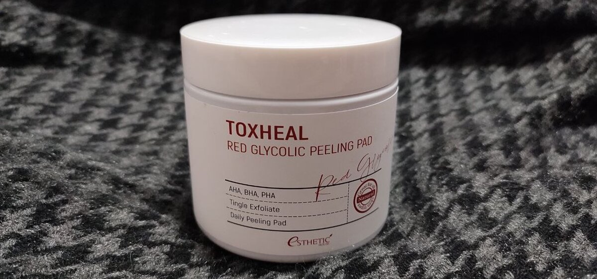 В свое время дерматолог открыл мне глаза на пользу кислотной косметики, которая (конечно же, в комплексе) заметно преобразила кожу лица (и не только). И в это время у меня было буквально помешательство на кислотах, в результате чего и оказались купленными пилинг-диски с АНА + ВНА + PHA кислотами Esthetic House Toxheal Red Glycolic Peeling Pad. Стоят они недешево (около 1100 рублей 💸: есть как дороже, так и дешевле), но в комплекте их 100 штук, поэтому хватит надолго. Возмущения-восторги о внешнем виде Я редко хвалю дизайн баночек-колбочек, и пилинг-диски Estetic House — явно не тот случай. На тот момент я еще путала бренд с Etude House и The Skin House, и по сравнению с ними он проигрывает в дизайне. Перед нами обычная белая банка из пластика. Иногда, когда я ходила к косметологу, мне предлагали отливанты косметики. И упаковывали в те самые унылые пластиковые баночки, такого же скучного белого цвета 😑. Могла бы спасти ситуация наклейка, но она тоже не вызывает восторгов. Похожа на вы