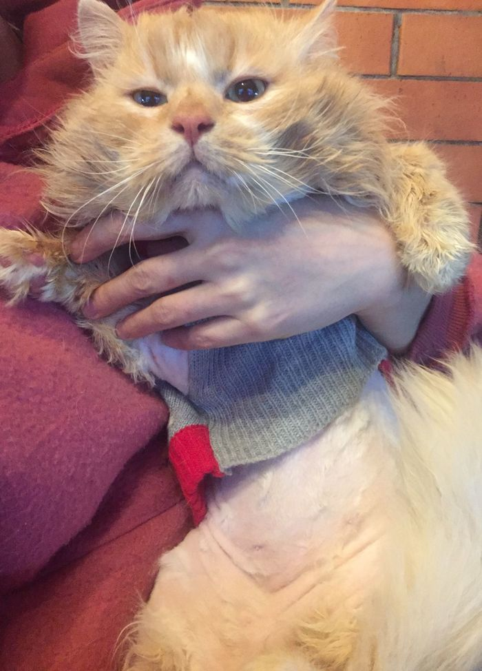 Валеру пришлось побрить почти полностью, так что теперь он носит свитер (временно).
