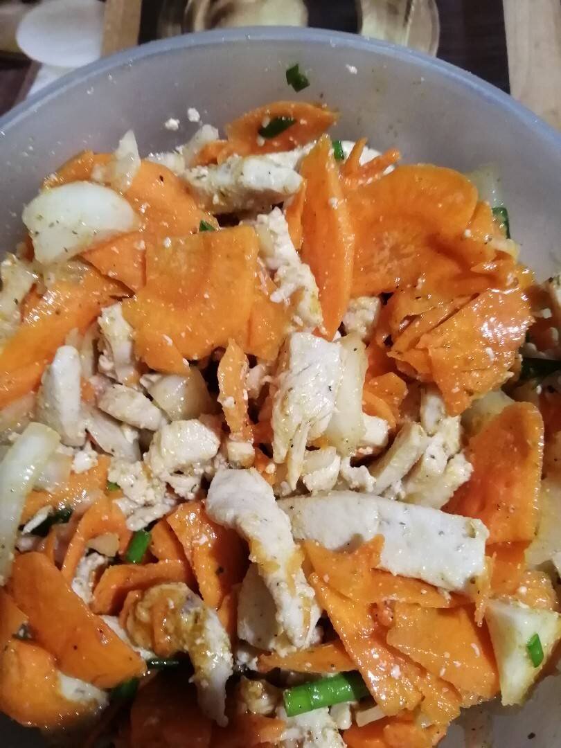#кукпад4 #салаты🐲🐉🦖От всего сердца поздравляю всех Кукпадовцев с Днём рождения! Всего самого наилучшего,а главное здоровья и благополучия в семьях и работе, мира и исполнения заветных желаний!🥂🥀🤗🍊🪔🎊🎂🥀🍰 Ингредиенты: Куриная грудка, Морковь 🥕, Лук репчатый 🧅, Масло растительное для жарки, Корейская приправа для 🥗 "Чим-Чим", Зелень Способ приготовления: Куриную грудку ополоснуть под проточной водой и нарезать полосками. Обжарить на сковороде на разогретом растительном масле до готовности. Морковь 🥕 натереть на тёрке (можно на корейской или слайсами, чтобы была потоньше). Лук - полукольцами. Все ингредиенты сложить в салатницу и сверху выложить приправу "Чим-Чим". Добавить свежую зелень. Хорошо перемешать. Поставить в холодильник на 2 ч. Приятного аппетита!