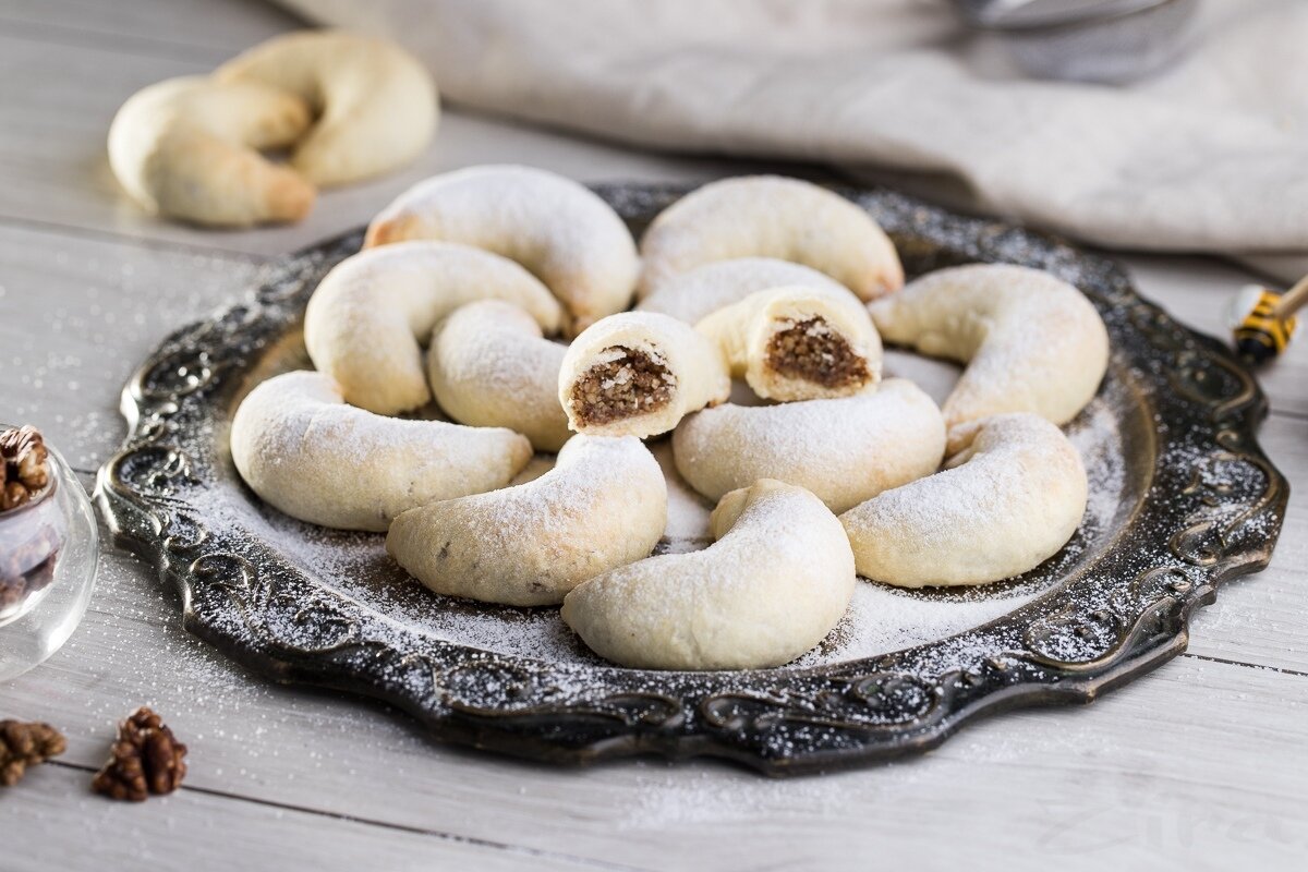 - Выложите рогалики на противень покрытый пергаментом и выпекайте в разогретой до 170 градусов духовке 17 – 20 минут.
