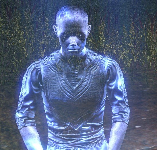 Восточнее дорожного святилища Вещего древа на мосту к крепости Дресан каджит встретил привидение. Ришар Дюсан удивлен, что мы его увидели. Он расскажет нам, что был знаменитым искателем приключений и охотником за сокровищами. Пока в крепости Дресан его не убили культисты.