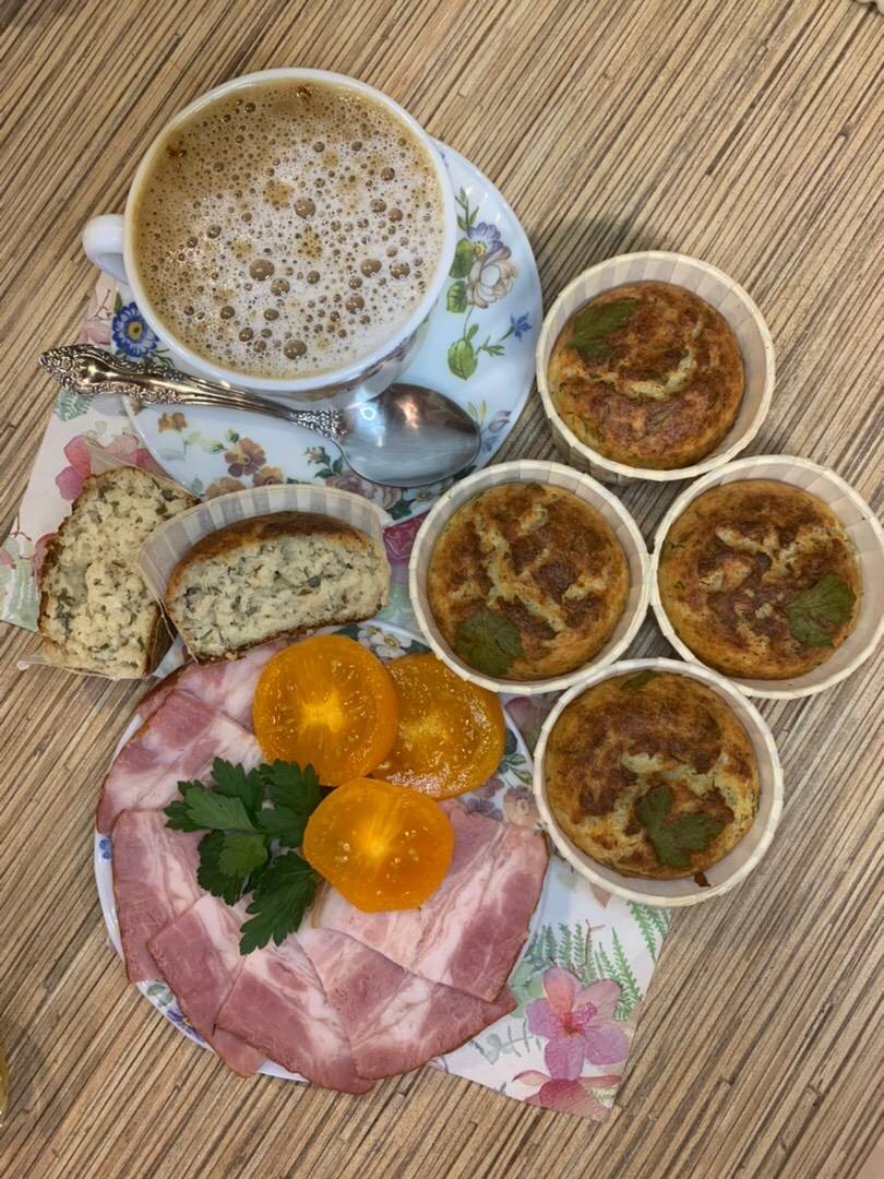 #завтрак #пирог ПП-запеканка или несладкая альтернатива сырникам Ингредиенты: творога, яйца, ржаной муки с горкой, разрыхлителя, соль, зелень (петрушка, укроп) Способ приготовления: Смешивает творог, яйца и все сухие ингредиенты. Зелень мелко нарезаем. Добавляем в творожную массу. Солим по вкусу. В формочки выкладываем по 2 ст л творожной массы. Сверху можно украсить листочком петрушки. Выпекаем в духовке мин 25-30 при 200’с до румяности. Приятного аппетита. 😋