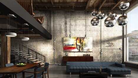 В переводе с английского «loft» переводится весьма просто — «чердак». А вот в американской трактовке это короткое слово принято переводить, как «верхний этаж склада или промышленного помещения». Такое двоякое определение привело к тому, что лофтами иногда называют второй этаж обычного коттеджа, превращенный в единое пространство или же квартиру, стиль отделки которой можно назвать индустриальным, а комнаты совмещены в единое пространство. Дизайн в стиле лофт характеризуется не только общими чертами крупногабаритного помещения, но и особой цветовой гаммой, расстановкой мебели, особенностями декорирования, способами отделки поверхностей. Чтобы спроектировать промышленный интерьер для городской квартиры, нужно опираться на такие принципы: 1. Планировка должна быть открытой, без стен, отгороженных комнат. Это правило касается спальни, гостиной и даже кухни. Закрытыми могут быть только туалет и душевая комната. 2. Окна не прячут за шторами и занавесками. Они остаются видны. В почете пано