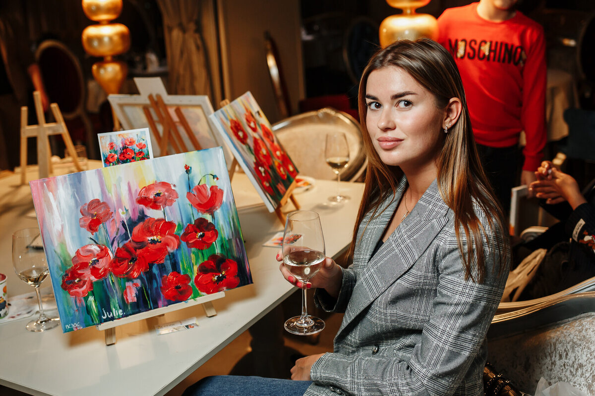 Всегда мечтали примерить на себя роль художника и посвятить вечер созданию эксклюзивной картины с бокальчиком вина? Мы предлагаем Вам наконец претворить эти мечты в реальность и открыть для себя невероятный мир творчества! Вы сможете не только хорошо провести время в компании единомышленников, но и овладеть новым навыком, поверить в себя и свои силы, а также увидеть этот мир другими глазами – глазами творца! Вечеринки проходят в лучших ресторанах города, чтобы гости точно не остались голодными, а заказывать любимые блюда можно было прямо во время написания картин! Художники-организаторы мастер-класса – художники, креативные и позитивные творческие ребята, которые любят своё дело и всегда готовы поделиться секретами живописи с заинтересованными людьми. Мероприятие проходит в группе до 15 человек в установленные дни. Вы выбираете из коллекции художника картину, которую планируете написать, либо согласовываете с ним свой вариант. По прибытии на место проведения арт-вечеринки Вы знакомитес