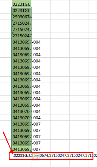 Эта простая операция - есть, например, список в колонке, и надо его сделать в одну строчку через запятую, и часто требуется, но в Экселе она не реализуется стандартными средствами - надо копировать его в Word как простой текст, а потом заменять знак абзаца ^p на запятую В Экселе это можно заменить макросом В данном случае он поставит список в последнюю колонку на 1 ячейку ниже выделенного диапазона Sub Commas() Dim x Dim S As String For Each x In Selection S = S & Chr(44) & CStr(x) Next x Cells(Selection.Row + Selection.Rows.count, Selection.Cells(Selection.Cells.count).Column) = S End Sub Как установить макрос в Эксель видео (не мое)