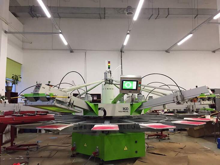 Наши инженеры установили и успешно ввели в эксплуатацию карусельный станок ROQPrint YOU XL 16C09, на одном из московских производств. Оборудование было приобретено в дополнение к имеющемуся автоматическому станку, который уже не справлялся с увеличивающимся спросом на продукцию и не позволял печать необходимое количество цветов на текстильных изделиях. Приобретенный карусельный станок ROQ позволит нашему клиенту, который занимается трафаретной печатью на любых текстильных изделиях и крое, производить многоцветные принты, до 14 цветов. Станок ROQ нашего португальского партнера максимально прост в использовании. Он оснащён программным обеспечением, которое позволяет контролировать все функции с центральной панели. Также для удобства пользователей программное обеспечение выдает предупреждения, когда необходимо провести техническое обслуживание машины. ESAPRINT – эксклюзивный поставщик оборудования ROQ в Россию. Наши специалисты помогут выбрать самую подходящую модель и модификацию оборудо
