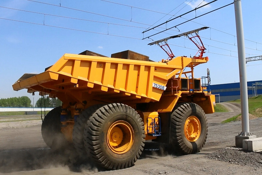 Во вторник, 22 июня, в Жодино состоялись демонстрационные заезды первого самосвала БЕЛАЗ-7530Е в дизель-троллейном исполнении. Для этого на территории предприятия был создан полигон для испытаний дизель-троллейвозов с контактной троллейной линией общей протяженностью более 400 метров, 33 опорами и тяговой подстанцией мощностью 1,8 МВт. В ближайшие месяцы на нем будут проведены комплексные испытания, которые должны подтвердить прогнозные показатели эффективности троллейвозной модификации самосвала. В торжественной церемонии открытия полигона и демонстрации техники приняли участие министр промышленности Республики Беларусь Петр Пархомчик, председатель правительства Сахалинской области Алексей Белик, генеральный директор ОАО "БЕЛАЗ" Сергей Никифорович, а также представитель потенциального заказчика опытной партии дизель-троллейвозов председатель совета директоров Восточной горнорудной компании Олег Мисевра. Представляя новинку, Сергей Никифорович отметил: "Выпуск таких машин – это перспек