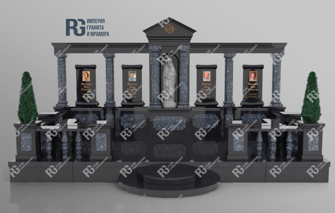 Создание памятника для усопшего близкого - это чаще всего индивидуальный проект, который требует тщательного внимания и оригинального подхода. За период работы Империя гранита и мрамора RG выполнила заказы разной степени сложности, доказав, что для компании нет невыполнимых задач. Мы решили с вами поделиться самыми интересными примерами работ. Тяжелая конструкция весом 3 тонны Этот установленный мемориальный комплекс относится к числу самых тяжелых работ. Для создания всех деталей понадобилось более 3 тонн натурального гранита черного и красного цвета. Портрет усопшего нанесен на стекло триплекс в полный рост (182 см)! Изготовление мемориального комплекса заняло около 7 месяцев, а для его установки понадобилась специальная техника и даже строительный кран. Специально для выполнения этого заказа гранит в необходимом количестве был привезен напрямую из месторождения. Стоит отметить, что в первую же ночь после проведения монтажных работ в регионе прошел сильнейший ураган, который повреди