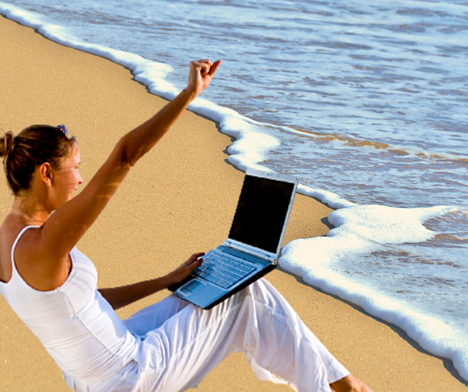 Даже если будут заявки от клиентов во время отдыха, то вы совершенно забудете , что на отдыхе. Как думаете, что делает девушка на картинке выше за выключенным ноутбуком? Правильно, ничего)))