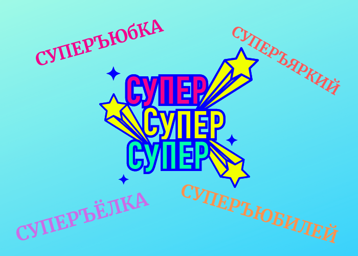 1. Суперъюбилей, суперъёлка Недавно я проводила опрос среди знакомых, как пишутся слова с приставкой «супер». Вы не представляете: никому не пришел в голову верный вариант. Предлагали и слитно, и раздельно, и через дефис. А правило очень простое: после приставки СУПЕР перед буквами ЕЁЮЯ нужно писать Ъ: суперъяркий, суперъюбка. 2. Нести под мышкой, взять под мышку В русском языке есть слово «подмышка», которое является именем существительным, изменяется по падежам и числам, пишется слитно: пальто порвалось в подмышках. Но существуют еще и наречия: «под мышками, под мышкой, под мышки, под мышку» - они пишутся раздельно (держать коробку под мышками, взять малыша под мышки). Наречия не изменяются, а под мышкой, под мышками, под мышки, под мышку – всё это разные слова. 3. Полкомнаты, полдороги, пол-ложки, пол-лимона Многие слова с «пол» непривычно нам писать слитно или через дефис, согласитесь? Запомнить же правило не составит труда. Дефис нужен в следующих случаях: • слово начинается с гла