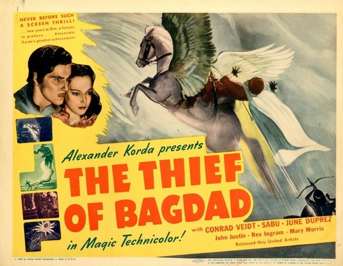 "Багдадский вор" был снят по последнему слову тогдашней техники, в частности, использовался хромакей (наложение нескольких изображений). В 1940-х это было круто, сейчас спецэффекты безнадежно устарели.