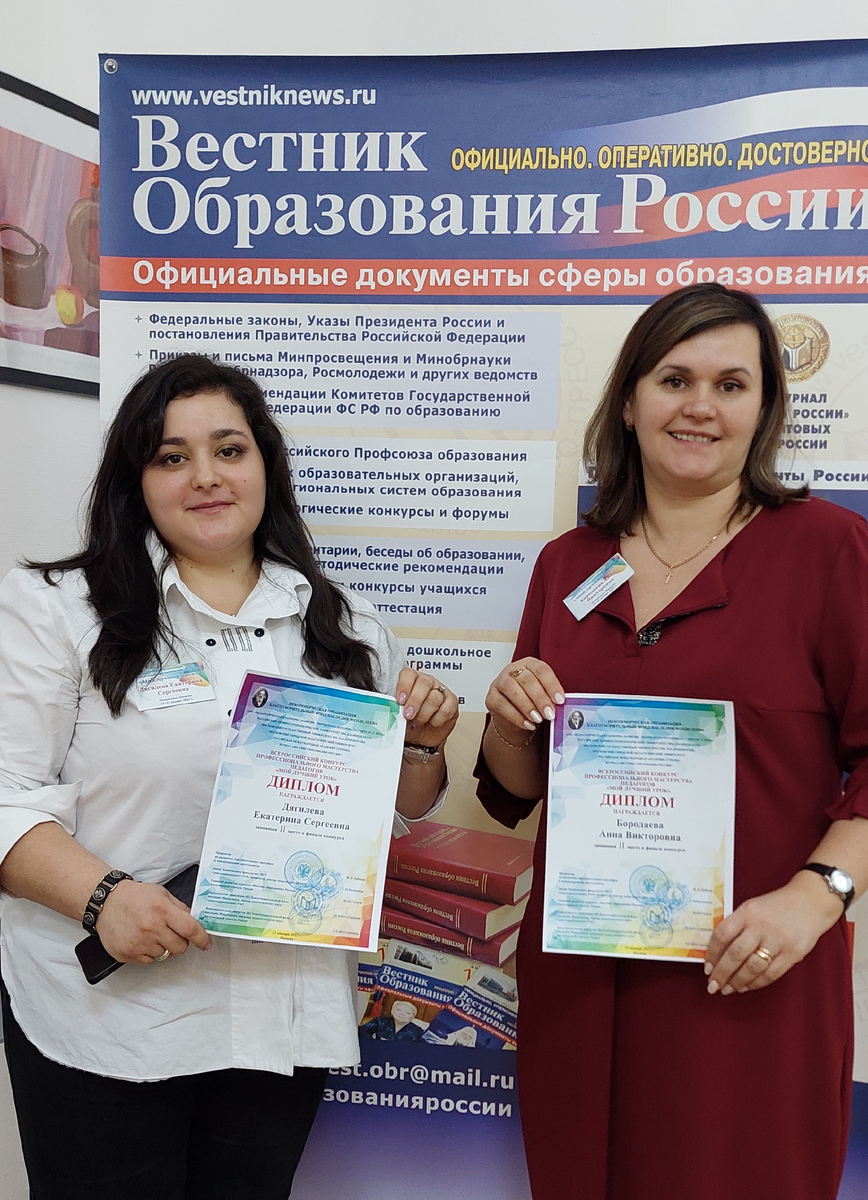 Воспитатель Екатерина Дягилева и учитель-логопед Анна Бородаева, педагоги абаканского детского сада «Добрыня», заняли второе место во всероссийском конкурсе профессионального мастерства педагогов «Мой лучший урок», каждая в своей номинации.