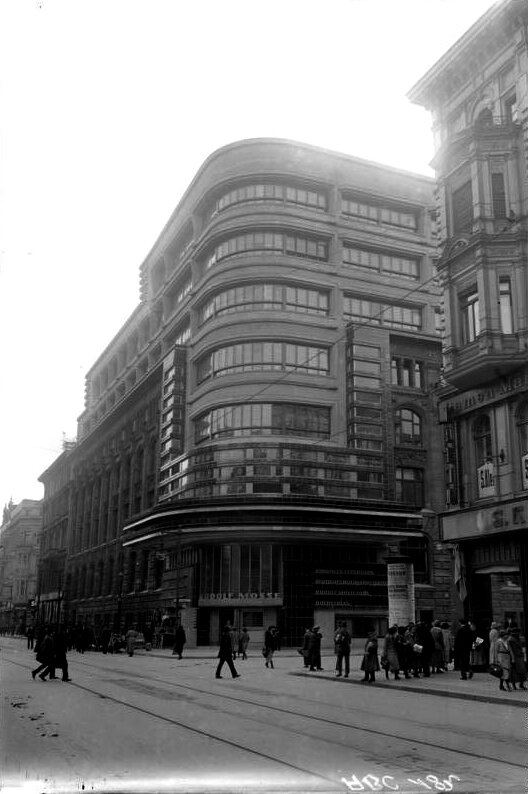 Сегодня популярен способ реконструкции здания, когда от старого остаётся просто главный фасад, а остальной участок просто застраивается новыми конструкциями, которые подчас значительно превосходят историческое здание. Особенно подобный способ распространён в России, уж очень у нас любят пристраивать стекло-бетонные огромные здания к небольшим историческим фасадам. Но если быть точным, подобная идея не нова, и наше сегодняшнее здание тому пример. Mossehaus, расположено в Берлине, построено в 1921-23 годах по проекту Эриха Мендельсона, архитектора прошедшего путь от экспрессионистской архитектуре к функционализму, ар-деко и streamline modern. Здание предназначалось для размещения редакции газеты Berliner Tageblatt, владельцем которой как раз был Rudolf Mosse, что, собственно, и дало название. Стилистически это как раз самое начало стиля streamline modern, этакого динамического ар-деко. Но необходимо уточнение, все же в 1921 году началось не строительство, а реконструкция (читай пере