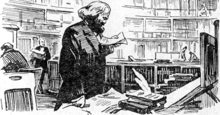 Маркс и его семья жили в тяжелых условиях. Бывали дни, когда Маркс не мог пойти работать в Британский музей (одно полнейших в мире хранилищ книг и рукописей), так как его единственное выходное платье было заложено в ломбарде. Первые главы «Капитала» Маркса были написаны за обеденным столом так как письменного стола у Маркса в то время не было. С большим трудом Марксу удавалось доставать литературную работу и то он мог печататься главным образом в Соединенных Штатах. Энгельс, который сам в то время был в стесненном материальном положении, помогал Марксу. Несмотря на крайние лишения, Маркс мужественно переносил трудности и находил силы и время, чтобы руководить рабочим движением.