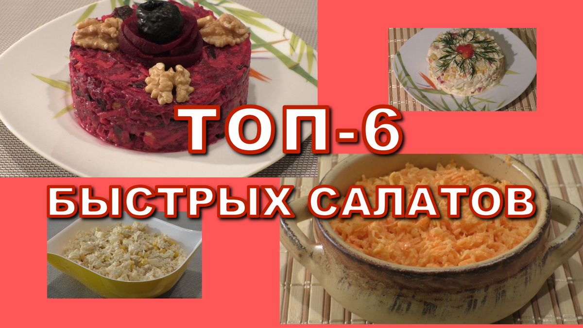 Сегодня я сделала для вас подборочку из 6 очень быстрых и вкусных салатов. Если вы ждете гостей или хочется чего-то вкусненького - приготовьте один из этих салатов, затратив при этом минимум времени и продуктов. Этот список салатов может стать палочкой-выручалочкой для любой хозяйки. Эти салаты настолько вкусные, что и на праздничном столе они займут достойное место.