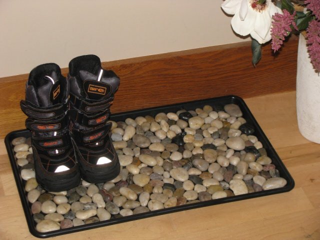 1. Как избавиться от луж в прихожей От налипшего на обувь снега нужно избавляться еще до входа в квартиру, иначе мокрых луж в прихожей не избежать. Но есть один способ, который позволит вам сэкономить время и силы – пластиковый или резиновый поддон с гравием. Как только заходите в квартиру, снимайте обувь и сразу ставьте в поддон. Когда вода стечет, промойте сапоги, а по мере загрязнения очистите и саму емкость. Так вы надолго сохраните прихожую сухой и опрятной. Можете приобрести поддон в магазине или сделать его самостоятельно, например, из старого кухонного подноса. 2. Как защитить полы в прихожей от соли Снег на улице часто обрабатывают солью и химическими реагентами. Дома эти вещества могут оставлять пятна на полу и даже деформировать напольные покрытия. Особенно часто страдают от такого воздействия паркет, ламинат и ковролин. Поэтому стоит обязательно обзавестись придверным ковриком из прочной резины и поддоном для обуви. Если же нужно срочно помыть пол от соли и снега, воспольз