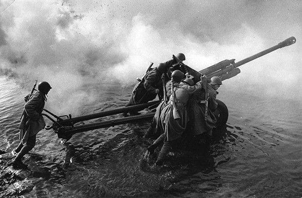 Начались уличные бои в самом Берлине, это очень страшное дело. Стреляло каждое окошко, каждая щель, благо с нами было много пехотинцев, они нас хорошо прикрывали. Двигаясь по улицам, видели наши подбитые танки, тогда я услышал про «фаустпатрон», эффективное оружие, находили такие, стреляли из них, экономя свои боеприпасы, оружие простое было. Подбегает посыльный от пехоты, мол, пулемёт мешает. Мне командир сорокапятки, он ранен был, говорит: