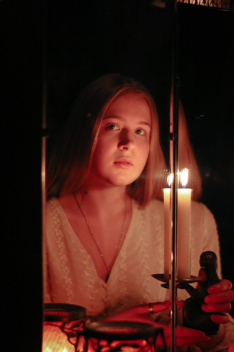 Мы познакомились в общей компании. Друзья друзей, подруги подруг, много знакомых и незнакомых друг другу людей. Из всего многообразия народа Катерина (именно так зовут героиню этой статьи) разительно отличалась от присутствующих своей самобытностью. Открытый взгляд, отсутствие макияжа, свежее молодое лицо, светящееся молодостью, ласковая улыбка и светлая коса до пояса, перекинутая через плечо. Дополнить это все винтажным гардеробом - скромным, милым и женственным - получился образ девушки из другого века. Единственное, что нарушало этот образ - современный смартфон в руках красавицы. Первая моя мысль была такой: "Откуда в нашем современном мире взялась эта дЕвица из русской светелки? Какая мистическая сила "затащила" ее в наше время? " Видимо мне надо поменьше смотреть мистических сериалов... Именно они виновники моих абсурдных мыслей. Естественно мой внутренний фотохудожник тут же дал о себе знать и я "подкатила" к Кате с предложением о сотрудничестве. Мы пообщались с ней и я поняла,