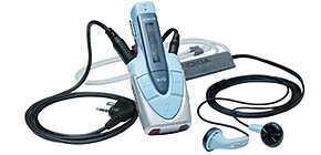 Одной из особенностей этого плеера было то, что он мог использоваться как гарнитура для мобильного телефона (поддерживались Nokia 3310, 3330, 8210, 8250 и 8850). Отмечу и другие возможности девайса. Music Player имел слот для сменяемой карты памяти на 32 МБ, которая могла обеспечить пользователя 1 часом музыки в формате AAC. Питание же было отдельным (одна батарейка ААА) от телефона. Подключался девайс к компьютеру через вездесущий USB.